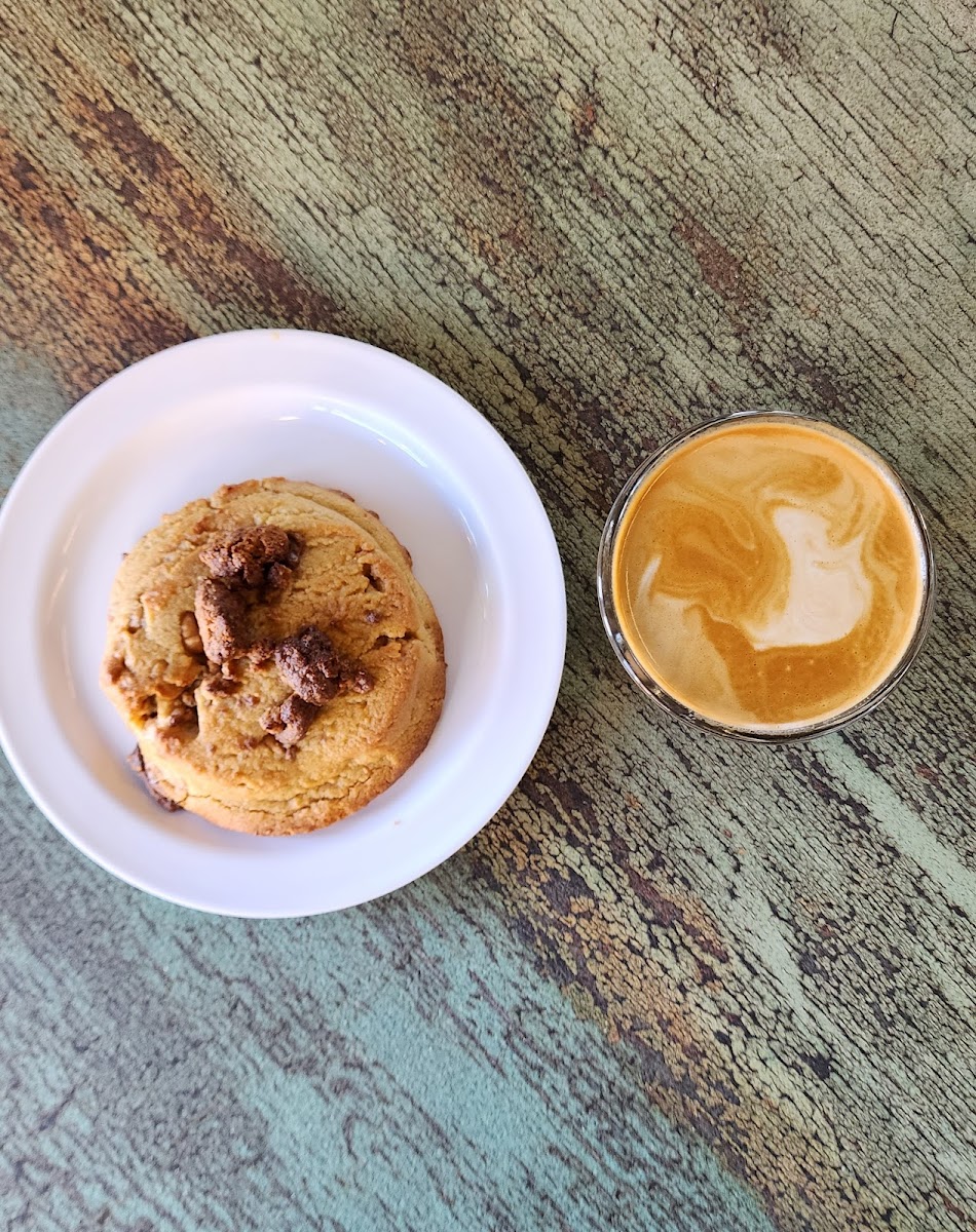 One of the standout dishes at The Mental Bar is their Avocado Toast. This isn’t your average toast; it's a fresh, vibrant take on the classic, topped with creamy avocado, perfectly seasoned, and served on a toasted slice of artisanal bread. It’s the ideal breakfast or lunch option, offering a satisfying balance of flavors that pair beautifully with their expertly brewed Cortado. The Cortado, a delightful espresso drink with just the right amount of milk, provides a smooth, rich experience that’s perfect for those who enjoy a balanced cup of coffee. If you’re in the mood for a sweet treat, don’t miss the Peanut Chocolate Cookie-its rich, indulgent flavors will satisfy any sweet tooth and make for a perfect end to your meal.